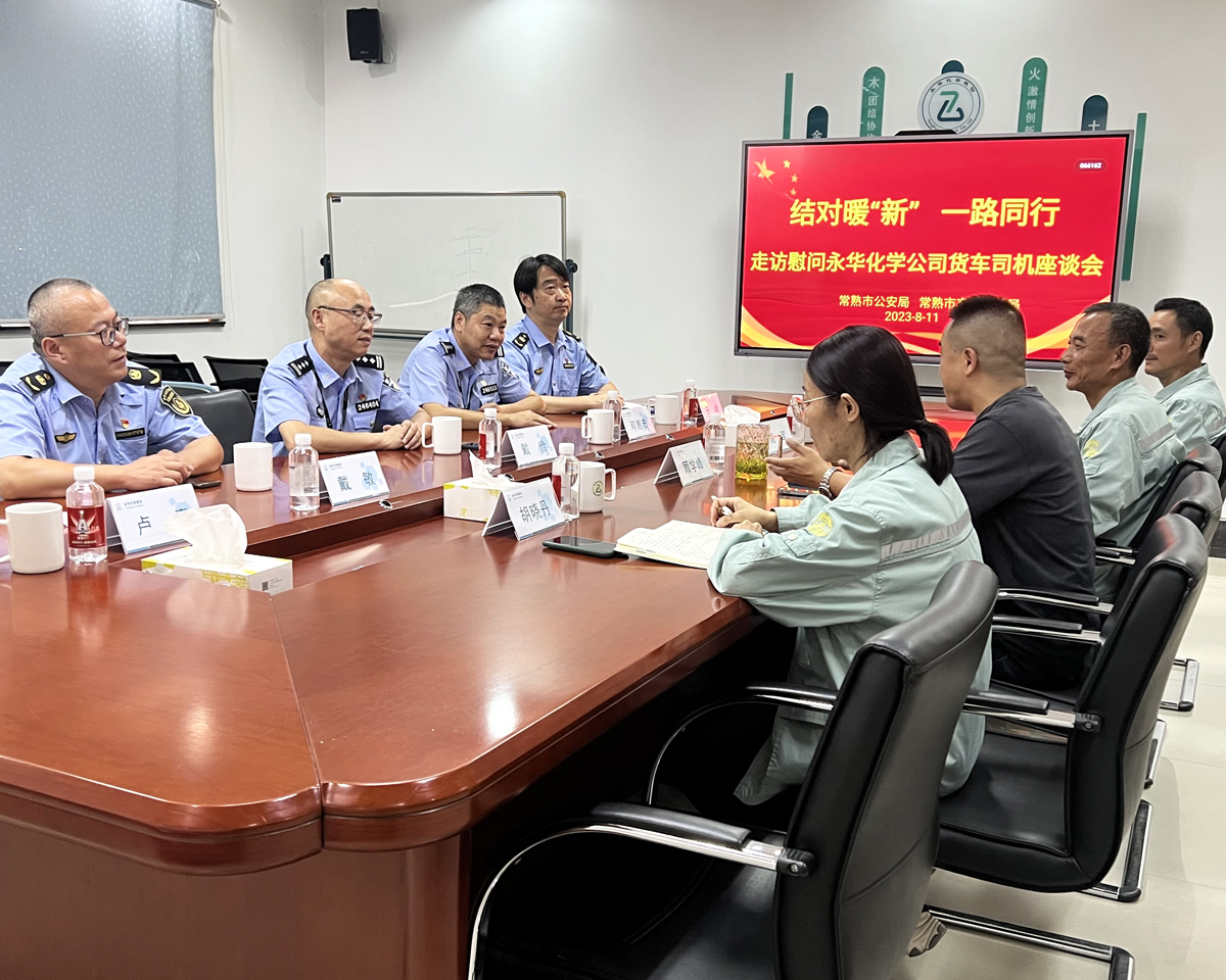 8月11日下午,常熟市公安局交警大隊(duì)教導(dǎo)員戴儉、市公安局車管所指導(dǎo)員鄧惠宏、市交通運(yùn)輸局執(zhí)法大隊(duì)副大隊(duì)長于斌及執(zhí)法大隊(duì)黨委副書記戴敏蒞臨我司慰問貨車司機(jī)。我司支部書記、總經(jīng)理顧學(xué)峰親自接待。