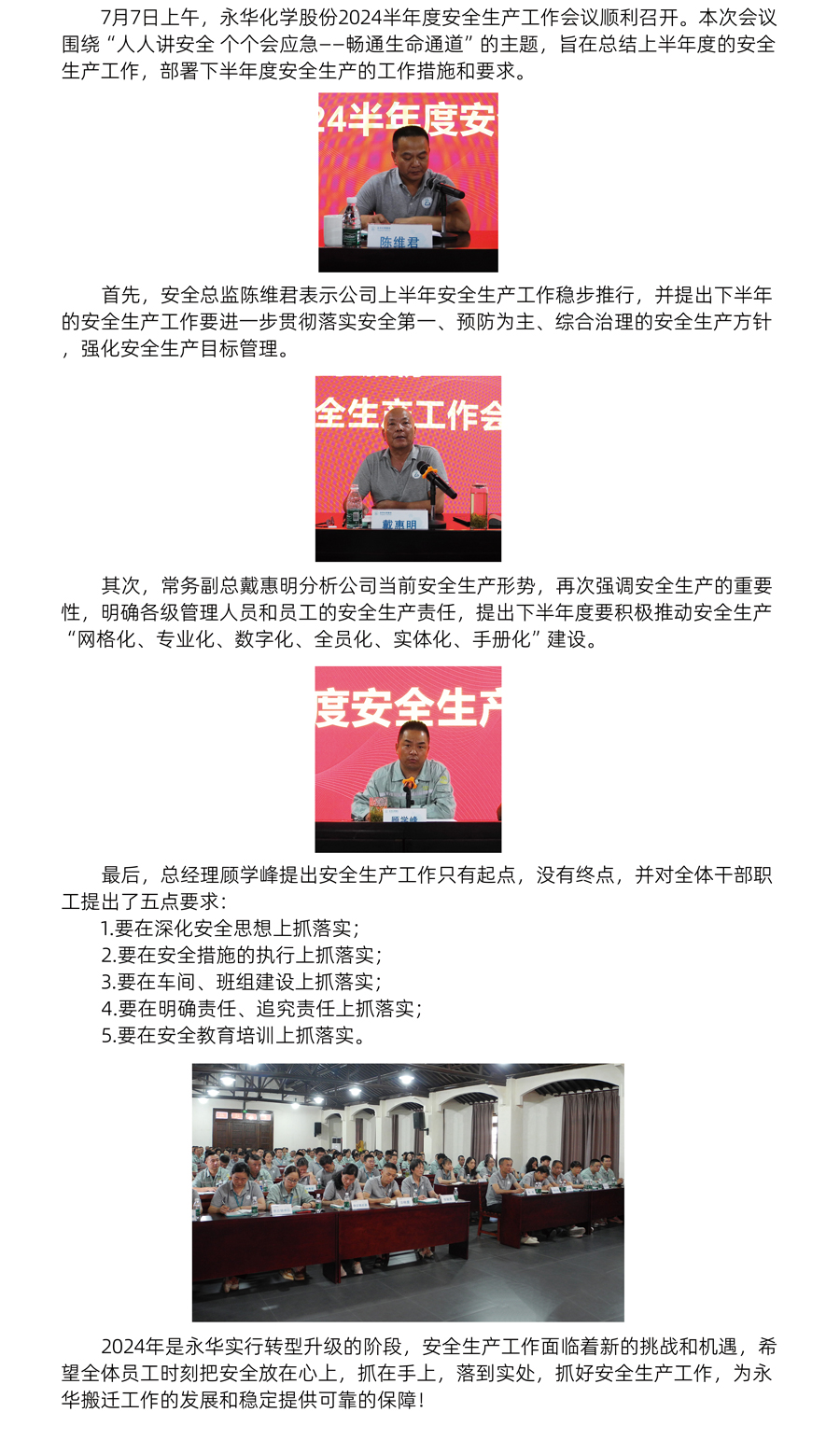 上一篇:支塘消防中隊到我司開展消防演練活動 下一篇:永華化學股份召開2024半年度銷售工作會議