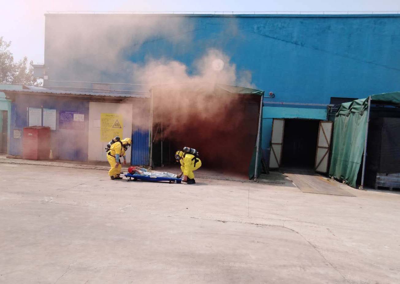 今年六月份是全國(guó)第十九個(gè)“安全生產(chǎn)月”,為進(jìn)一步加強(qiáng)安全生產(chǎn)宣傳教育,永華組織全體員工于6月30日下午開(kāi)展了一次綜合應(yīng)急預(yù)案演練。這次演練設(shè)定的事故場(chǎng)景是: 3號(hào)倉(cāng)庫(kù)溴素原料罐泄漏后1名巡檢人員現(xiàn)場(chǎng)查看時(shí)中毒昏迷,經(jīng)公司先期處置,后經(jīng)各救援組救援,人員得到救治,泄漏得到控制。